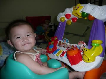 This is one of my favourite toys. I get to see a pretty face in the mirror, it sings to me and there are lots of gadgets to bang my little fists into.